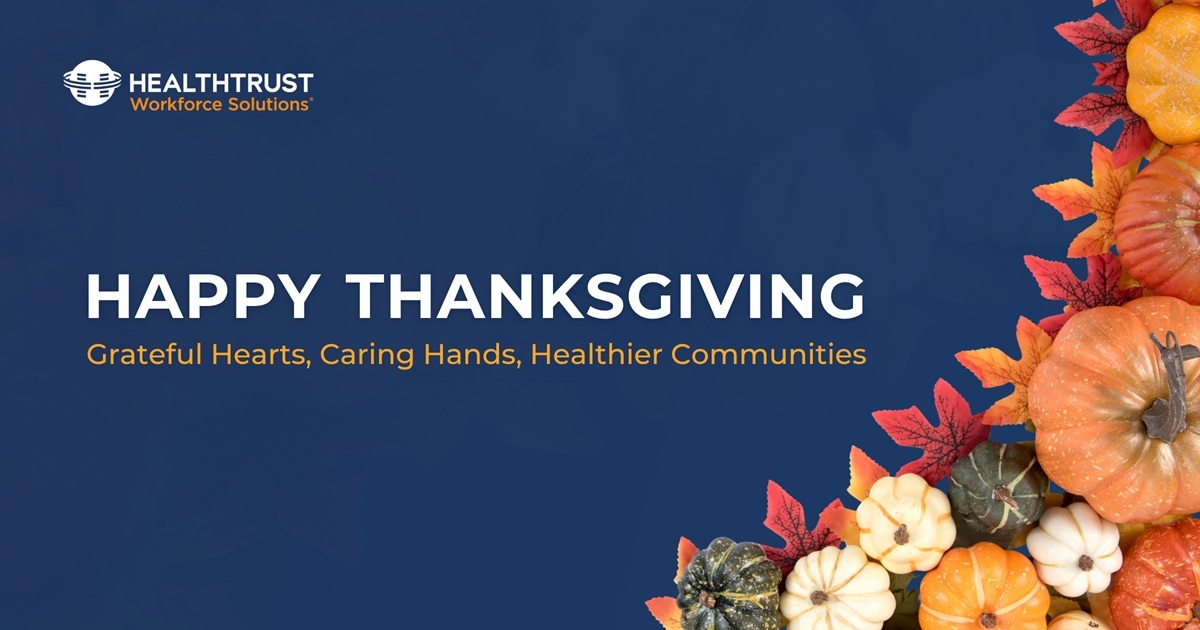 Happy Thanksgiving! Here at HealthTrust, we want to be among the first to show our love and gratitude to the many nurses and clinicians working hard during the holidays, and all throughout the year. And we invite you to join us with these 10 ways to thank nurses, clinicians, and, if you're a healthcare worker, yourself, too!